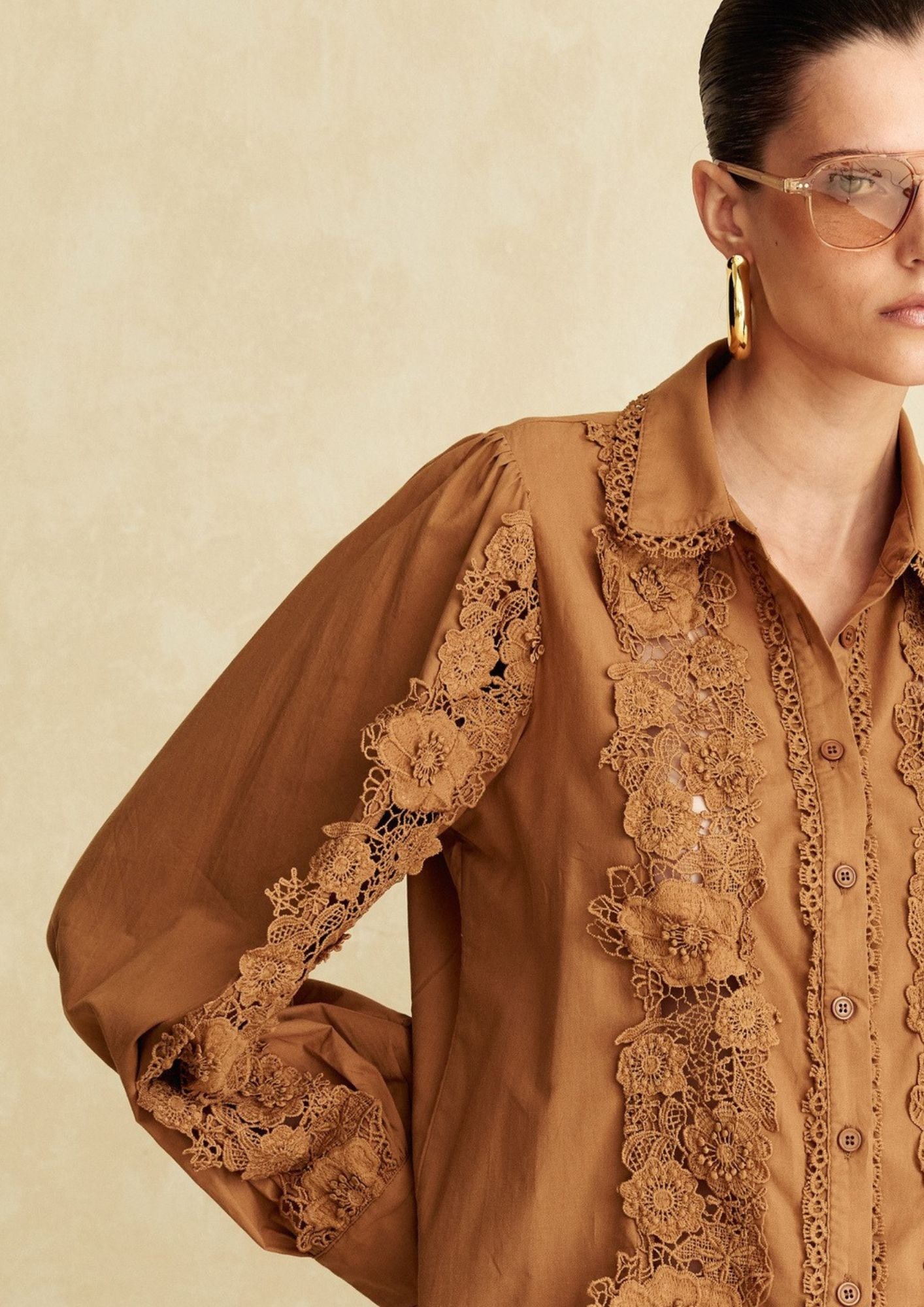 CAMISA RENDA COM RECORTE REDONDO