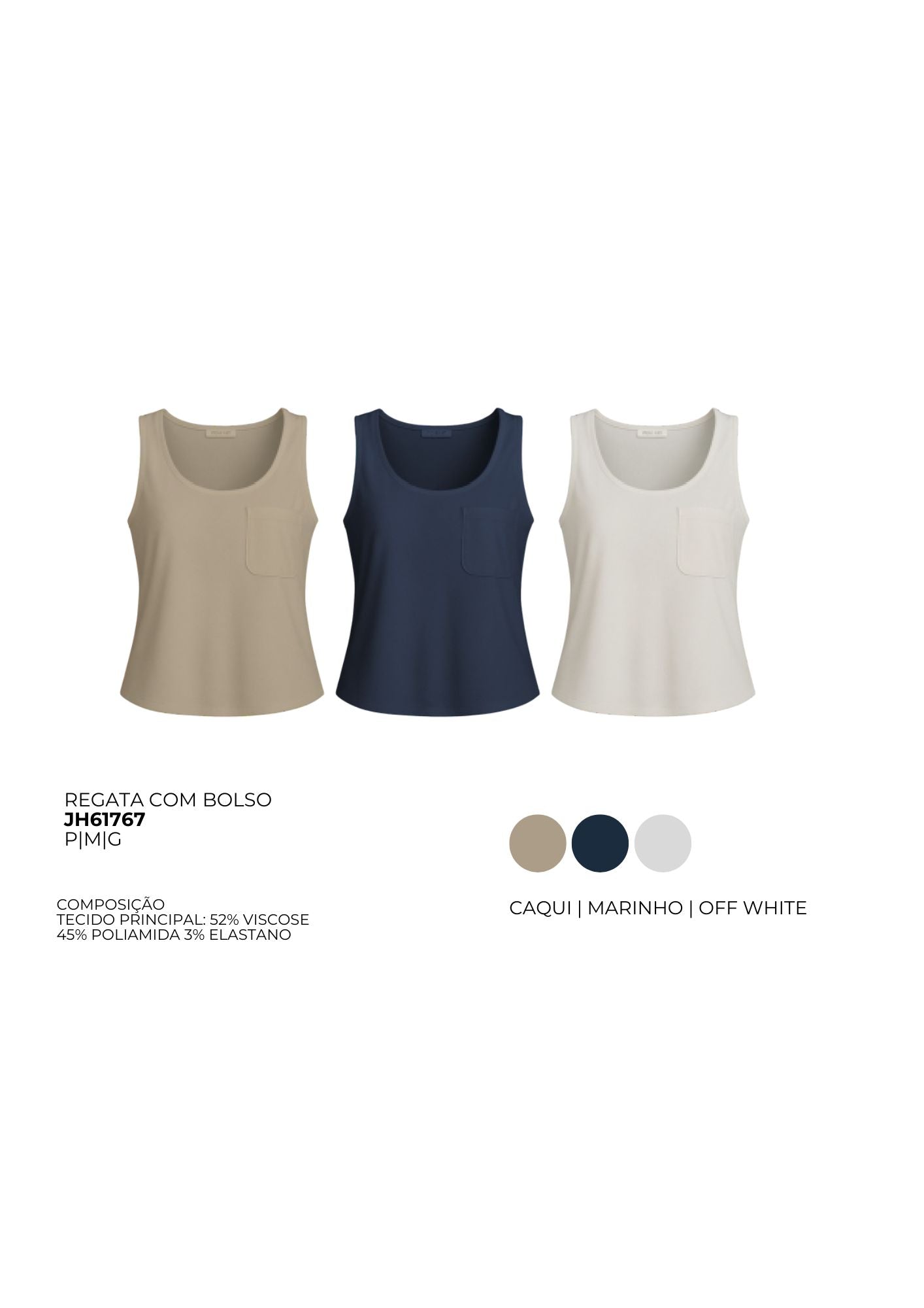 Regata em malha de textura lisa, modelagem reta e levemente solta, decote arredondado raso e cavas amplas. Possui bolso chapado aplicado no lado esquerdo do busto.